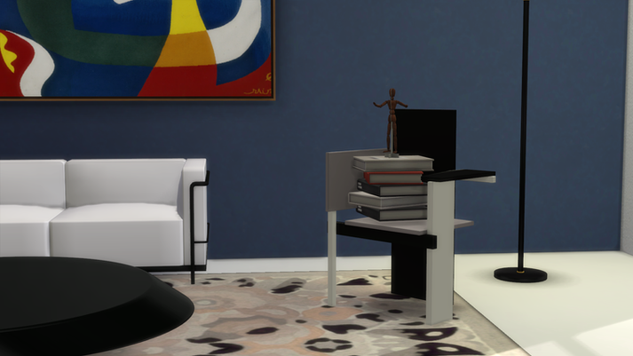 In 1923 Gerrit Rietveld designed his iconic Berlin chair for the ‘Juryfreie Kunstschau’ in Berlin. In addition to the Red-Blue chair, this is one of Rietveld’s most famous chairs. In 1960 Rietveld designed two new versions of the chair for the boardroom of the Rijksacademie van Beeldende Kunsten in Amsterdam. In this second version, a cushion was used and one of the chairs (that of the chairman) was fitted with a higher backrest. Rietveld built the Berlin chair from eight separate planks. The avant-garde design and iconic lines of the chair represent Rietveld’s basic principles as a member of the De Stijl art movement, which he joined in 1919. The chair is made of solid oak panels and is lacquered in white, black and grey. The wood structure is retained, so that the chair looks very characteristic and atmospheric.