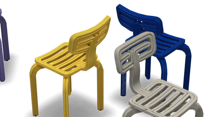 Dirk van der Kooij first fell in love with low-resolution 3D printing as a student, fulfilling his search for honest and functional ornamentation. The Chubby chair remains his most playful child of this process, which finds its alien form through the limitations of a self-developed, plastic extruding robot.