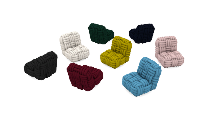 The Knitty Lounge Chair by Nika Zupanc is the ultimate way to relax in style. With its oversized 'yarn' that looks like ship ropes and luxurious knitted fabric, this chair is a conversation starter. Its chunky basket weave provides a unique tactile sensation, while the design invites you to curl up with a book or TV show.