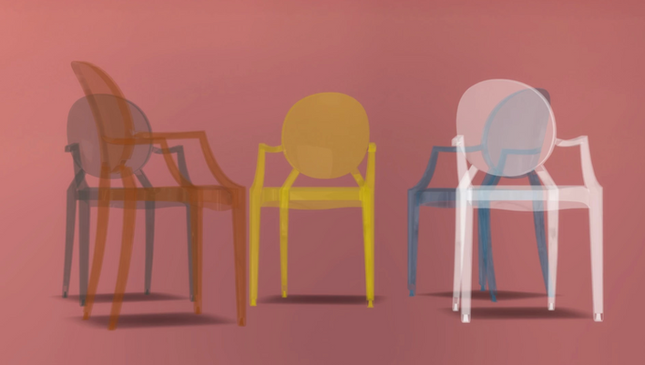 A comfortable armchair in transparent and coloured polycarbonate in the Louis XV style, it is the quintessence of baroque revisited to dazzle, excite and captivate. Louis Ghost is the most daring example in the world of injected polycarbonate in a single mould. Despite its evanescent and crystalline appearance, Louis Ghost is stable and durable, shock and weather resistant and can also be stacked six high. This article has great charm and considerable visual appeal and brings a touch of elegance and irony to any style of home or public area.