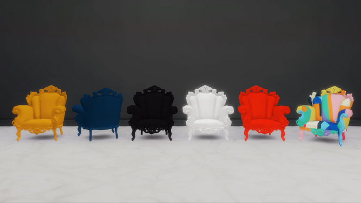 Designed by Alessandro Mendini in 1978, this armchair is the re-edition of one of the historic pieces of contemporary italian design. Hand-carved and hand-painted wooden frame, upholstered with fixed multicolour fabric matching the colours of the structure.