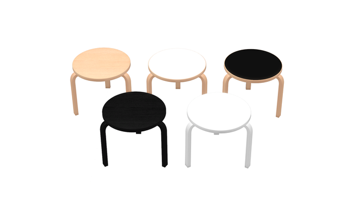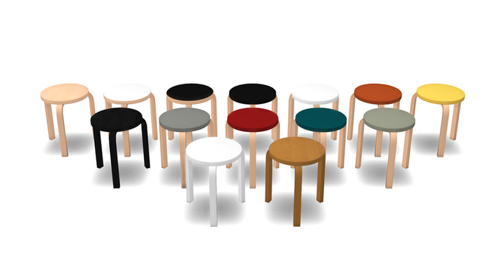 Alvar Aalto’s iconic Stool 60 is the most elemental of furniture pieces, equally suitable as a seat, a table, storage unit, or display surface. The legs are mounted directly to the underside of the round seat without the need for complicated connecting elements. Thanks to its geometry, the stool can be stacked to save space in a spiralling tower sculpture. Manufactured in 42 production steps at the A-Factory in Turku, Finland, Stool 60 is available in a wide variety of colours and finishes. Several million units of Stool 60 and its four-legged cousin, Stool E60, have been sold, making it one of the most cherished products in the history of design.